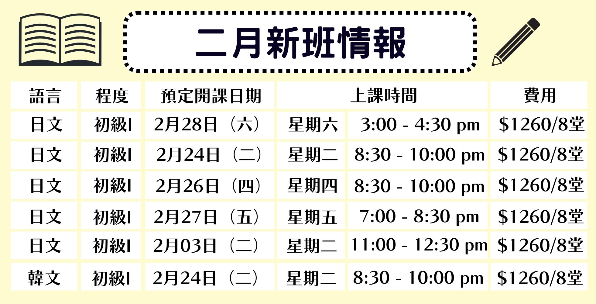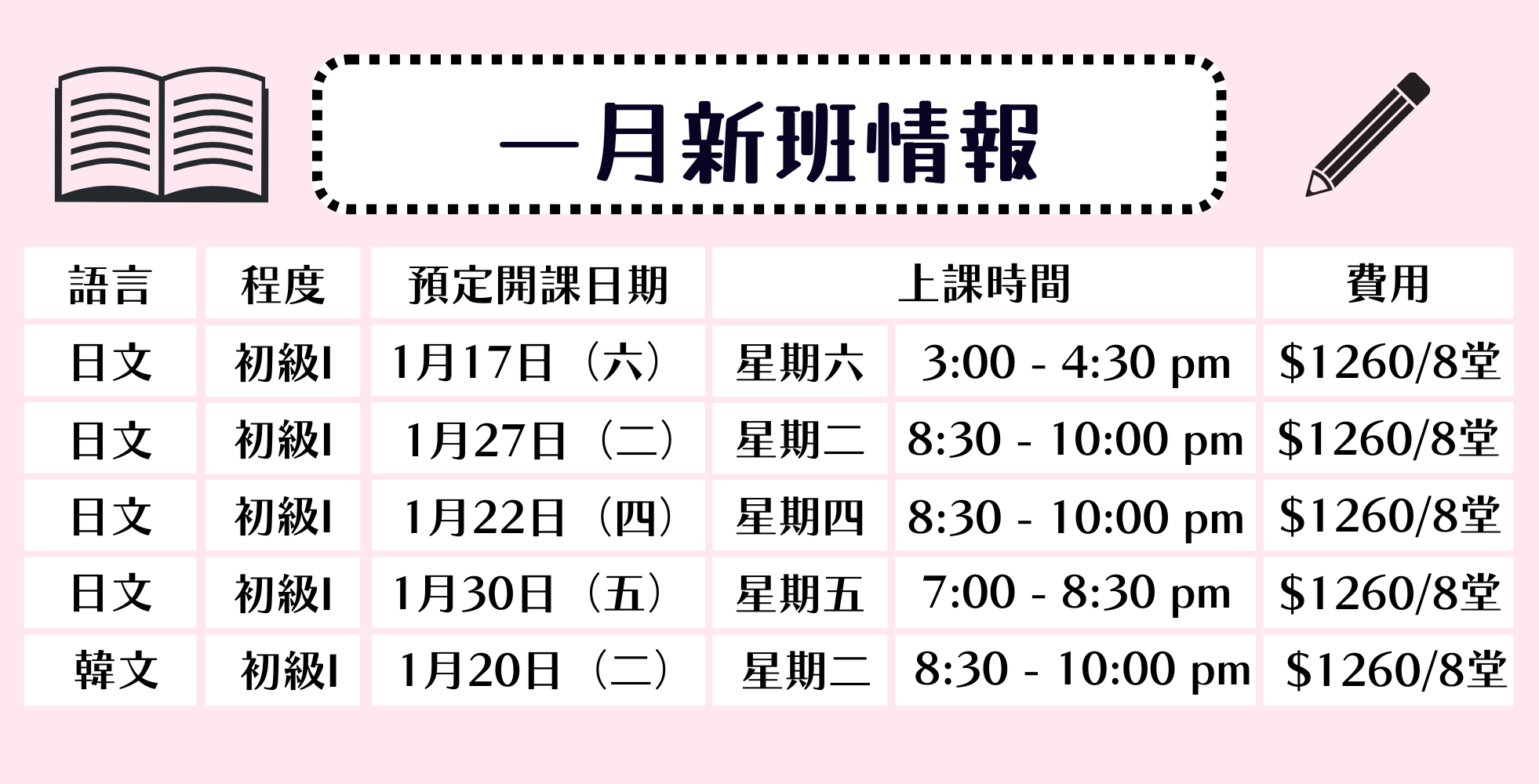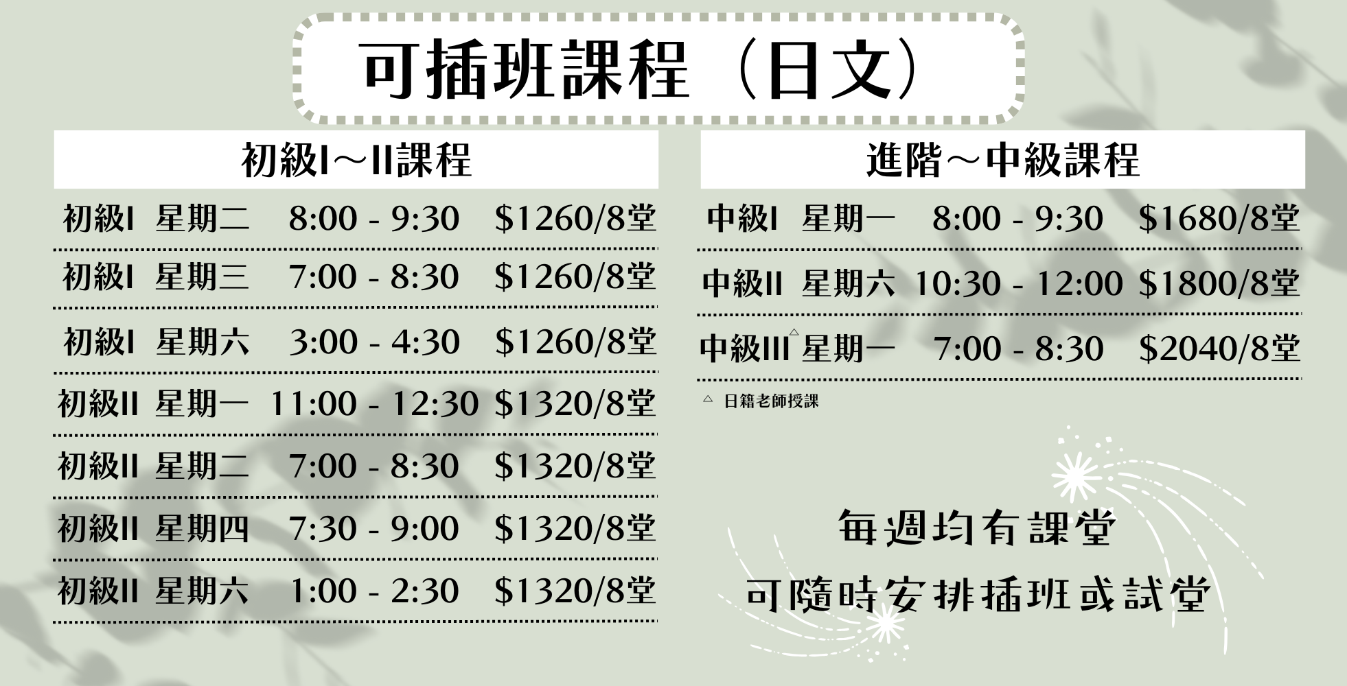 ‧ 日文課程 ‧ 韓文課程 ‧ 英文課程 ‧ 德文課程