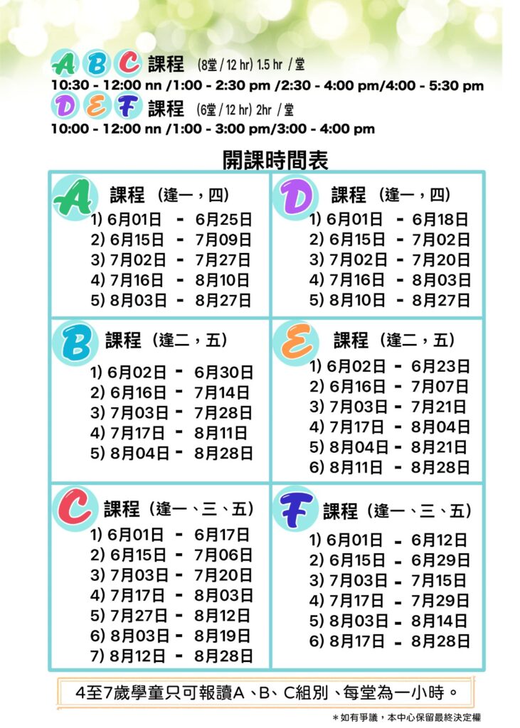A: 暑期班適合兒童、青少年及成人報讀,課程會按年齡分班。