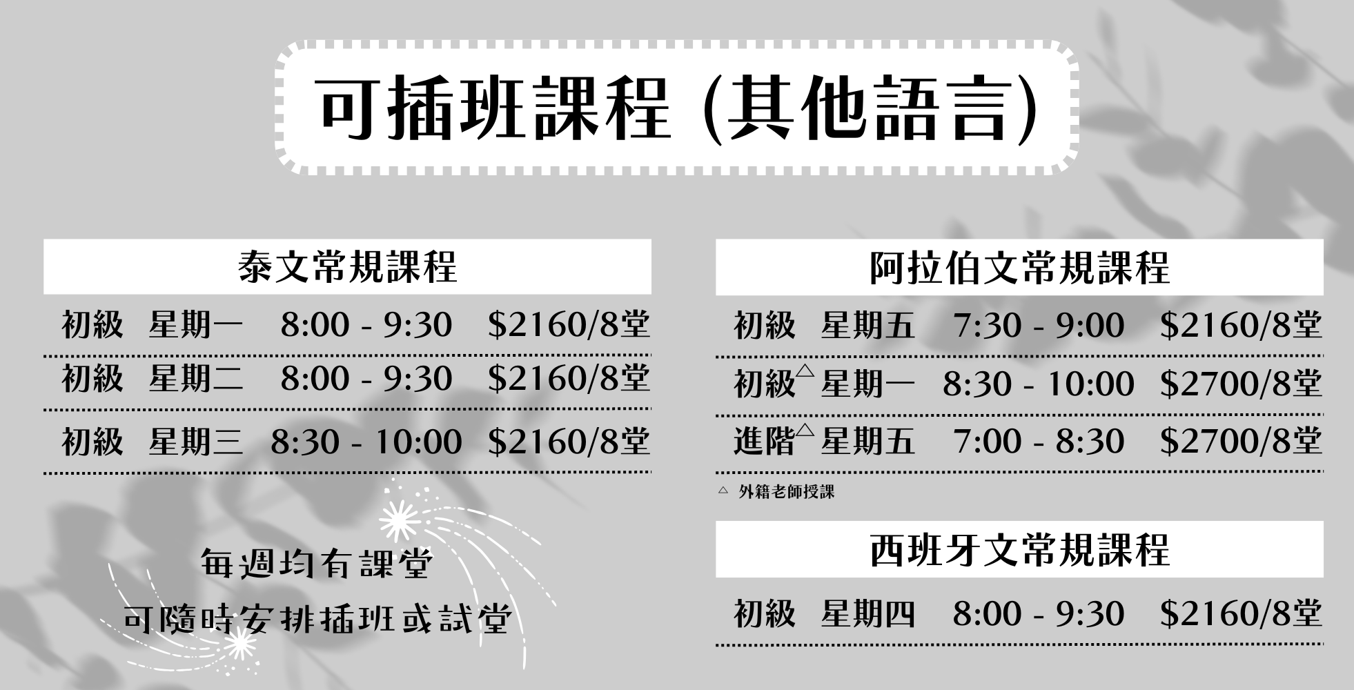最新時間表班制課程最新時間表常規班課程 可插班之課程 那撒在好地上的,就是人聽道,又領受,並且結實,有三十倍的,有六十倍的,有一百倍的。(可四:20) 聯絡我們+852 2375 1342+852 6115 0262streamwisdom streamwisdom@yahoo.com.hk香港九龍佐敦吳松街191號突破中心5樓營業時間星期一、星期五10:30 – 22:00星期二至四09:30 – 22:00星期六09:00 – 17:00星期日及公眾假期休息相關公司慧祈出版社 – 網店 慧祈語言中心有限公司 © 版權所有 不得抄襲 COPYRIGHT © 2026 Stream of Wisdom Language Center Limited ALL RIGHTS RESERVED.